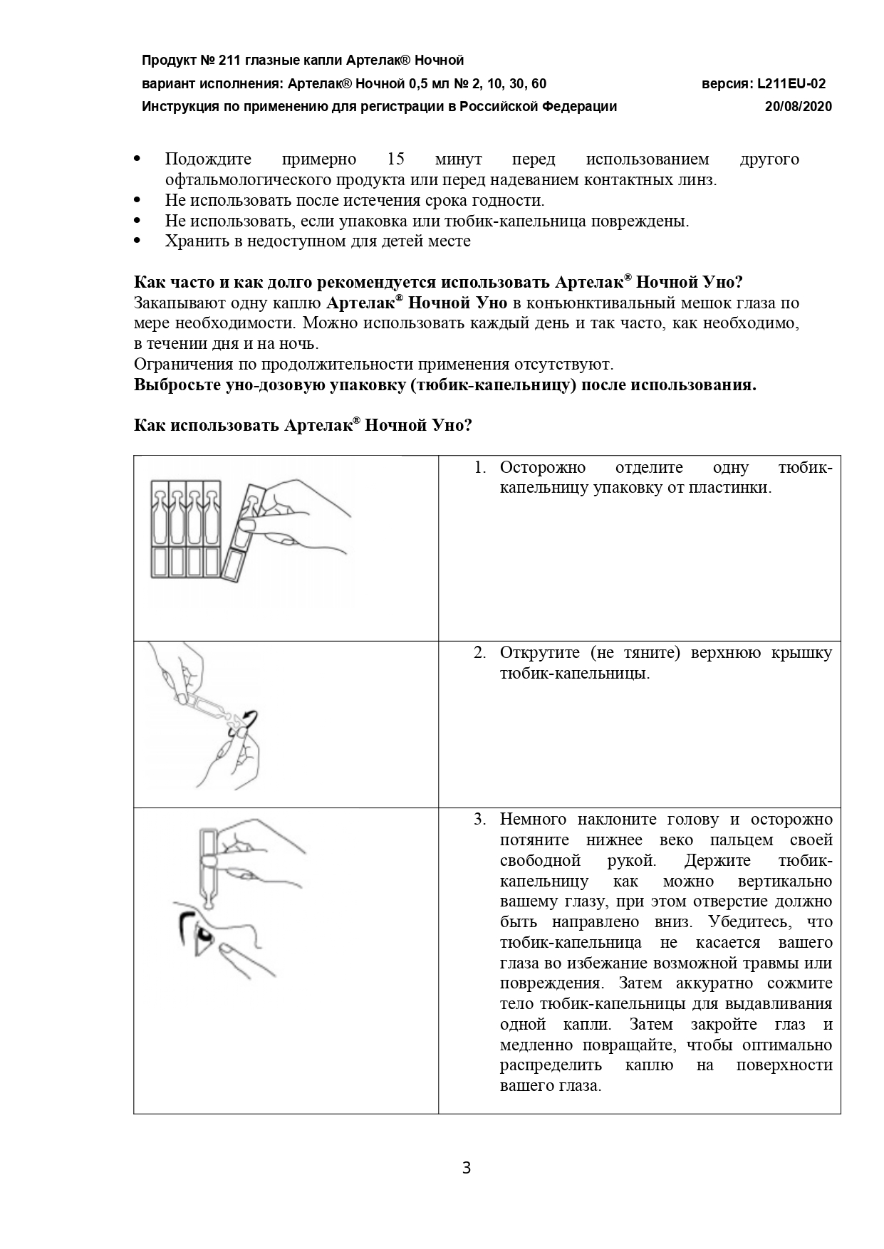 • Поддерживает все три слоя слезной пленки за счет карбомера, гиалуроната натрия, глицерина и триглицеридов