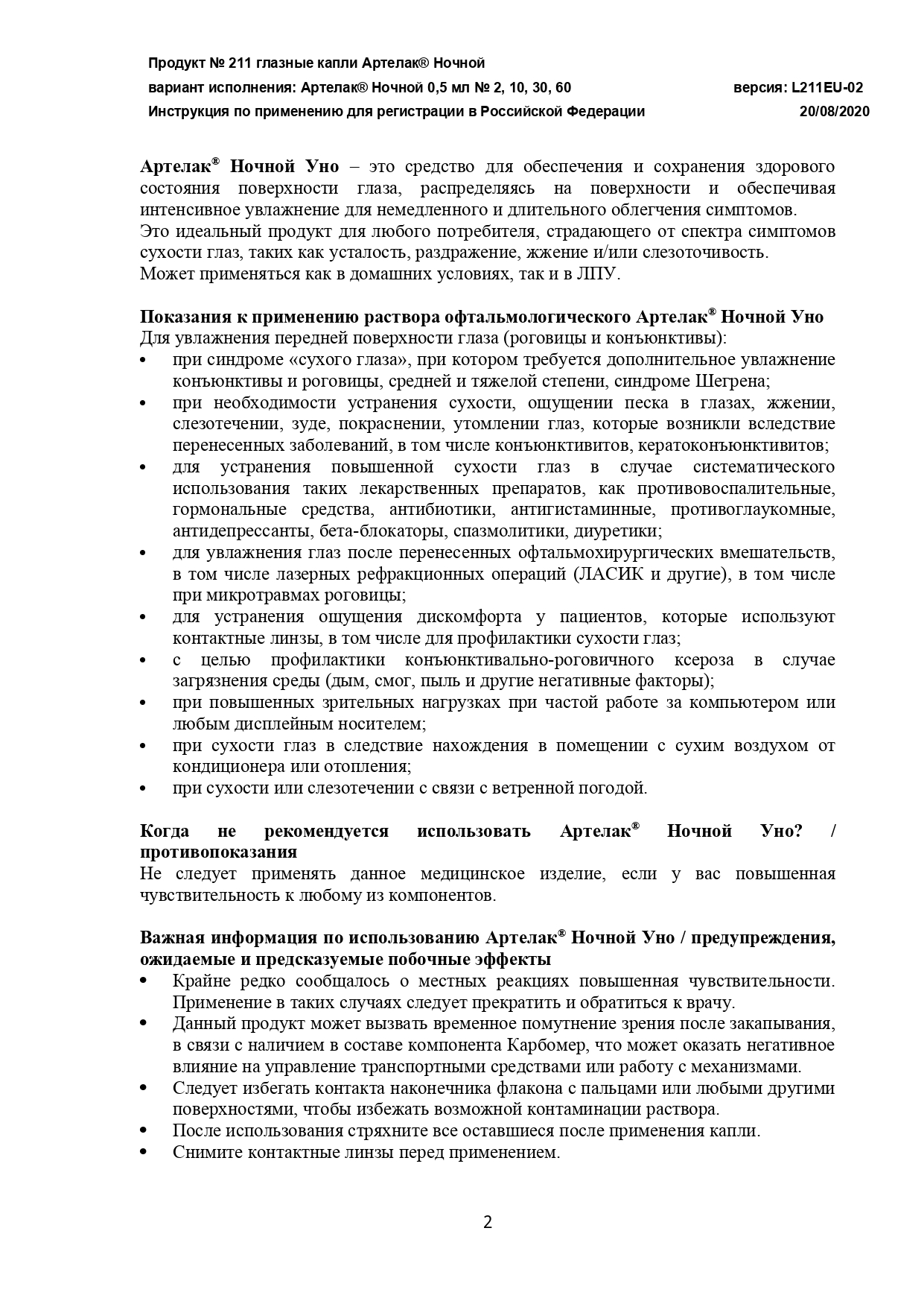 Артелак Ночной это средство для комплексного увлажнения, которое поддерживает все три слоя слезной пленки: липидную (за счет триглицеридов), водную (за гиалуроновой кислоты и глицерина) и слизистую фазу (за счет карбомера) с целью улучшения и поддержания увлажненности глазной поверхности при любых симптомах сухости и дискомфорта в глазах.