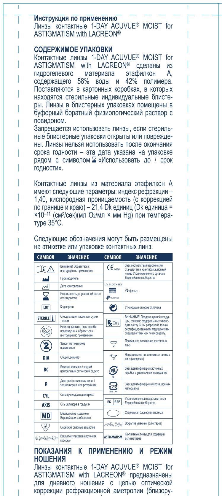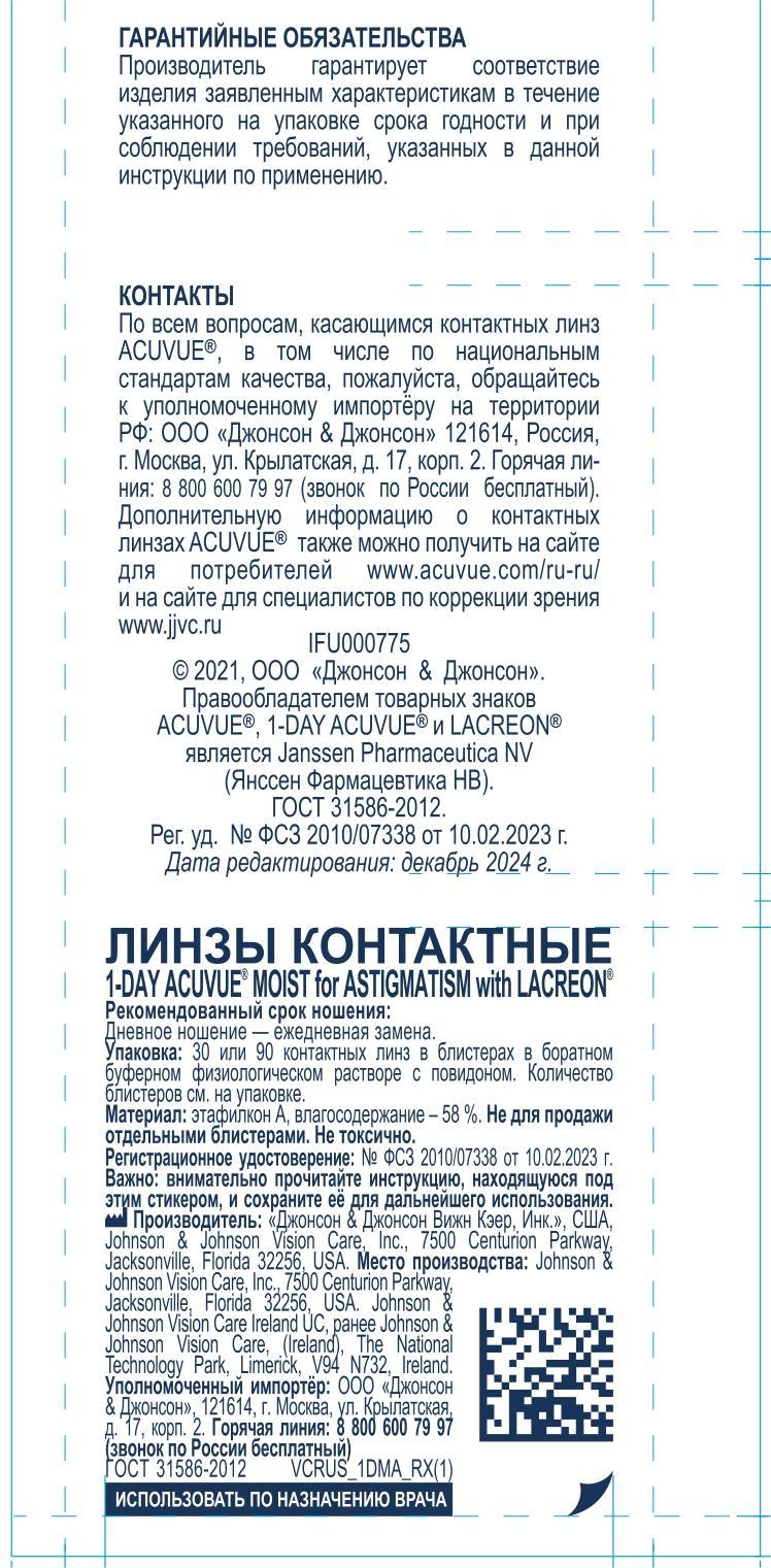 1-DAY ACUVUE MOIST for Astigmatism with LACREON, 90 линз