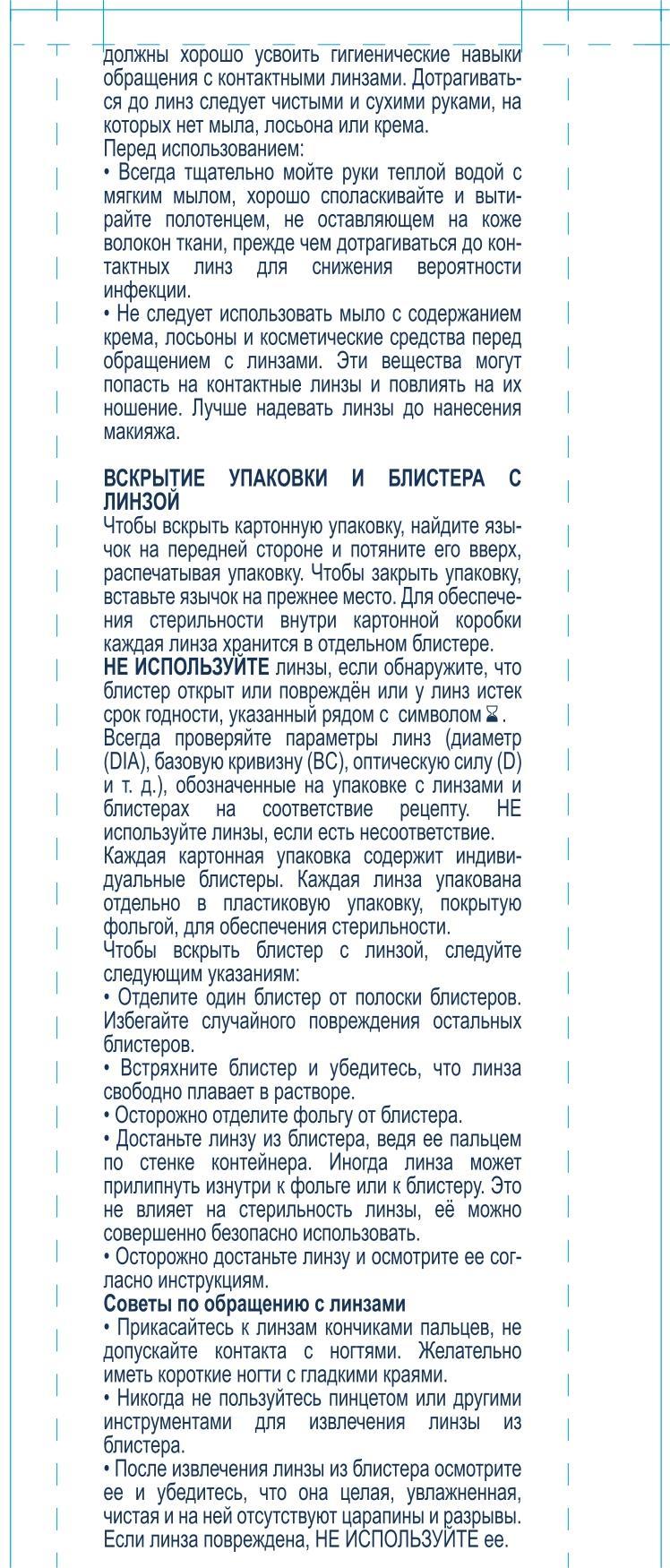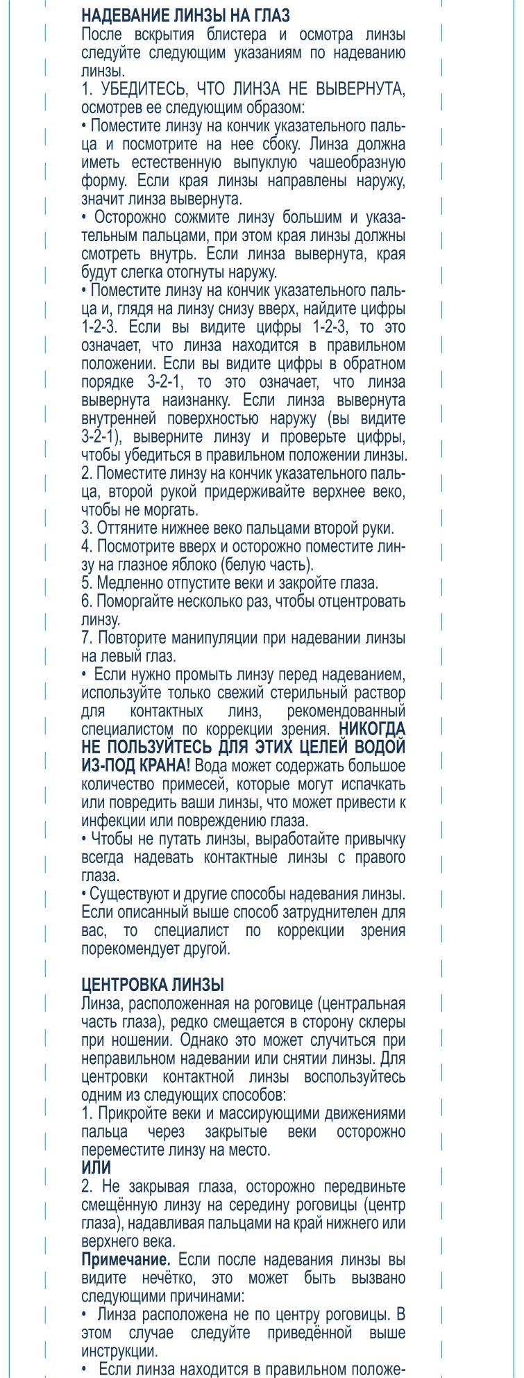 Удобство обращения. Голубая тонировка и отметка «1‑2‑3» помогают быстро найти линзу в блистере и проверить сторону