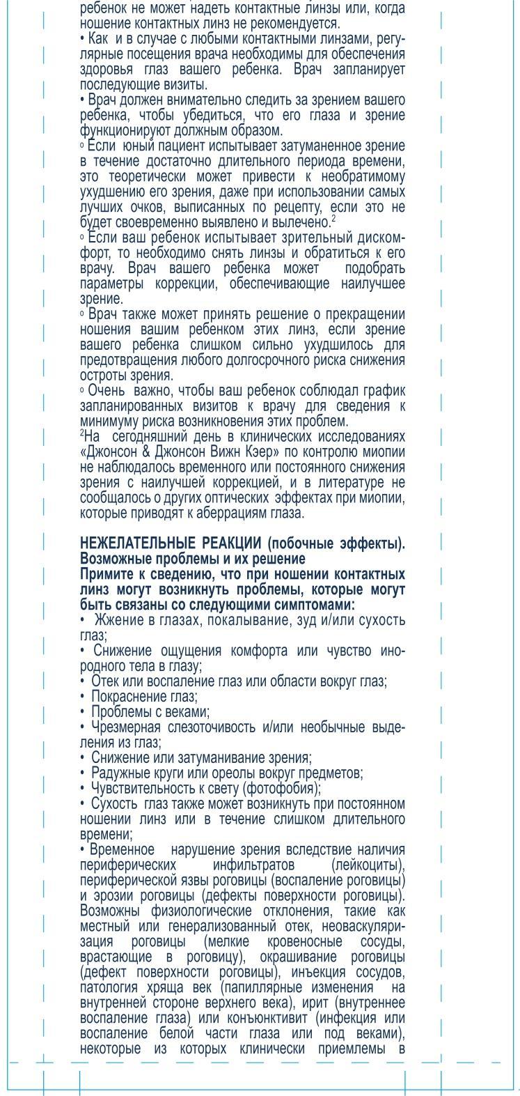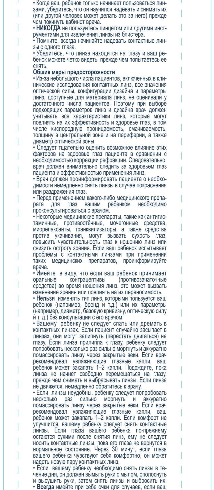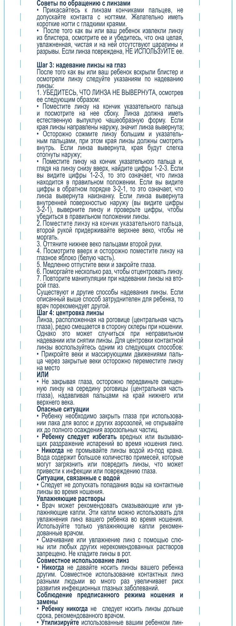 Комфорт при детском ношении. Геометрия линз учитывает особенности детских глаз. Линза стабильно центрируется и остается на месте в течение дня.
