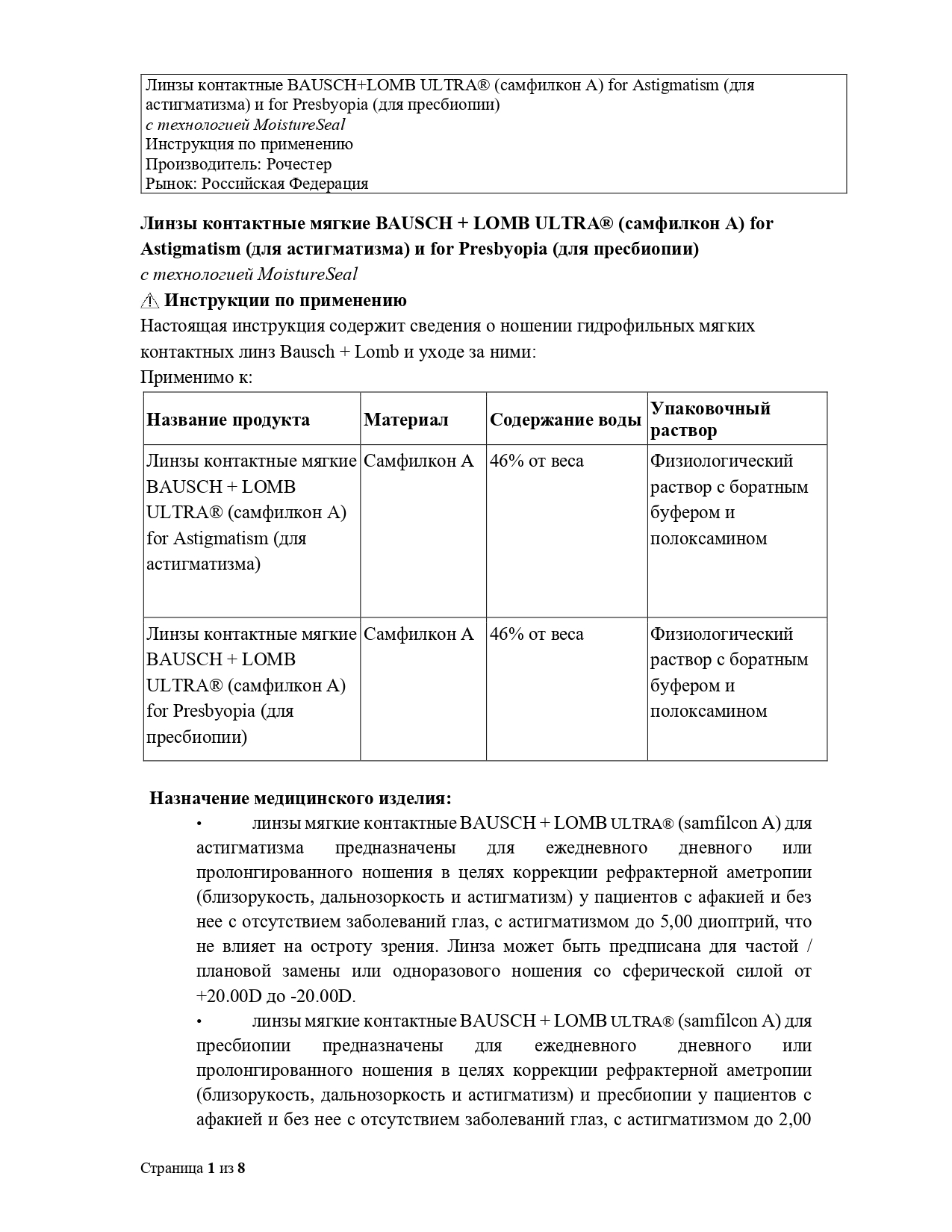 Линзы контактные мягкие BAUSCH + LOMB ULTRA® для коррекции пресбиопии обеспечивают естественное перемещение фокуса с ближнего расстояния на дальнее в течение всего дня.