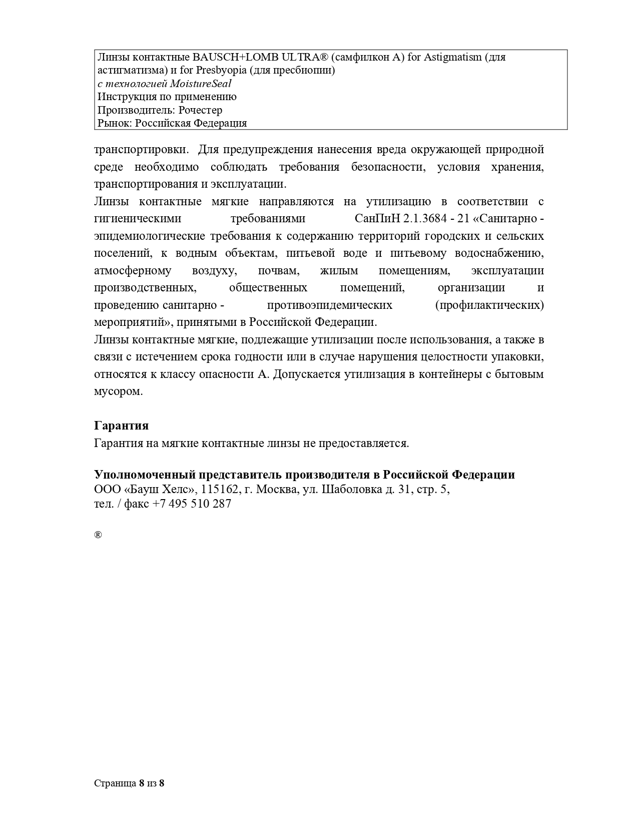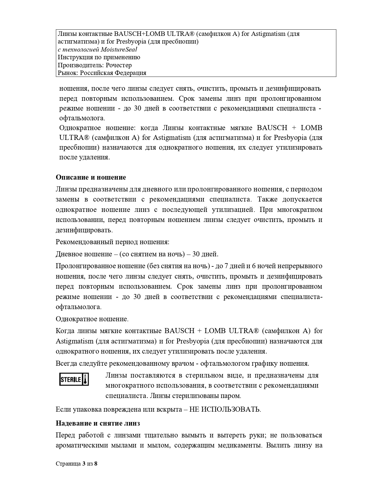 Bausch+Lomb ULTRA for Presbyopia, 3 линзы