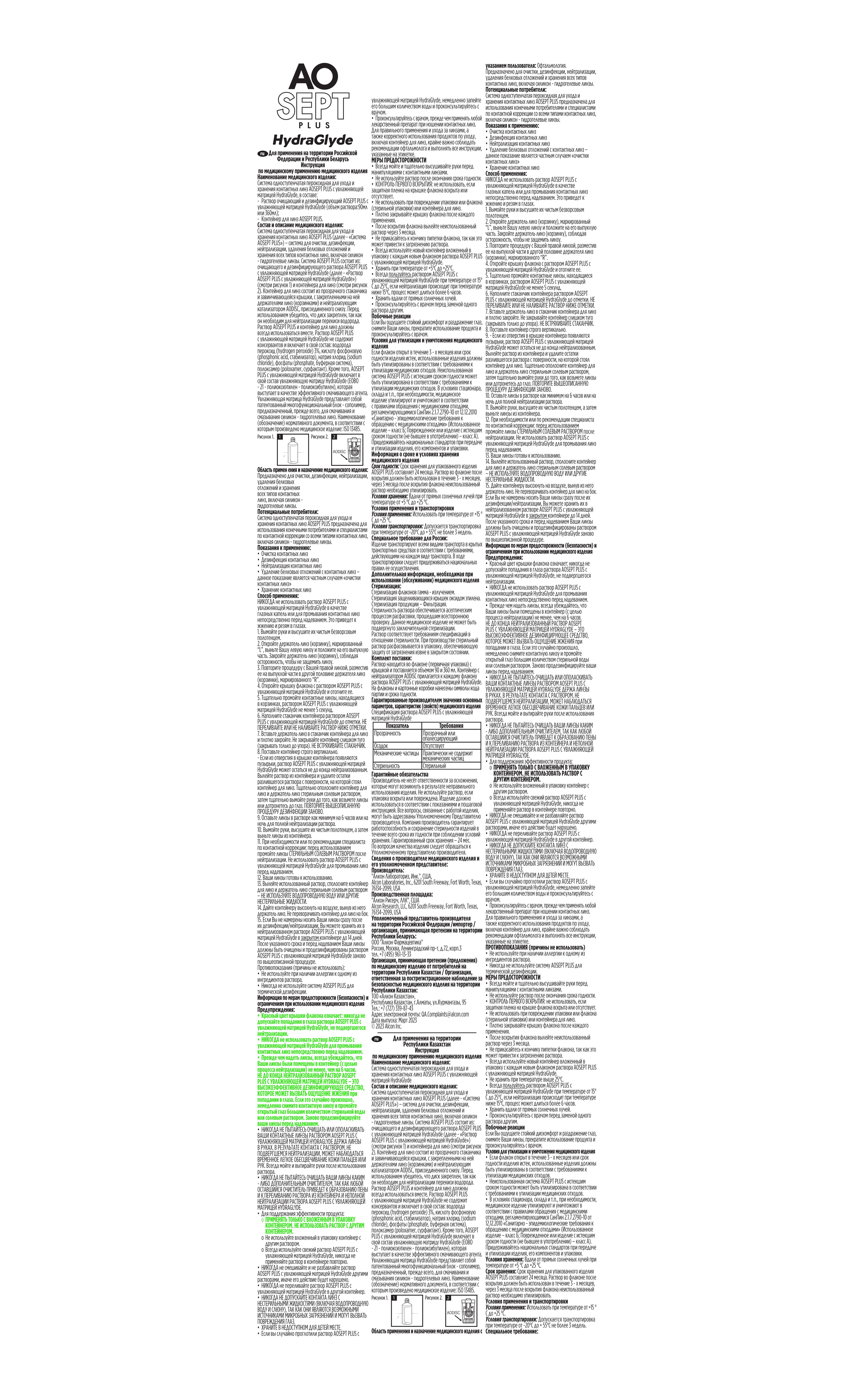 • Отличная увлажненность - раствор для линз Аосепт насыщает поверхность линз большим количеством воды, что делает их использование максимально комфортным;