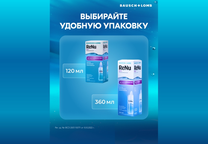 Рекомендуемое время обработки линз раствором Renu – не менее 4 часов (в этом отличие между растворами ReNu MPS и ReNu MultiPlus). Каждый раз нужно заливать свежий раствор, иначе линзы могут стать источником инфицирования. В закрытом контейнере они могут храниться в растворе не менее 30 дней.
